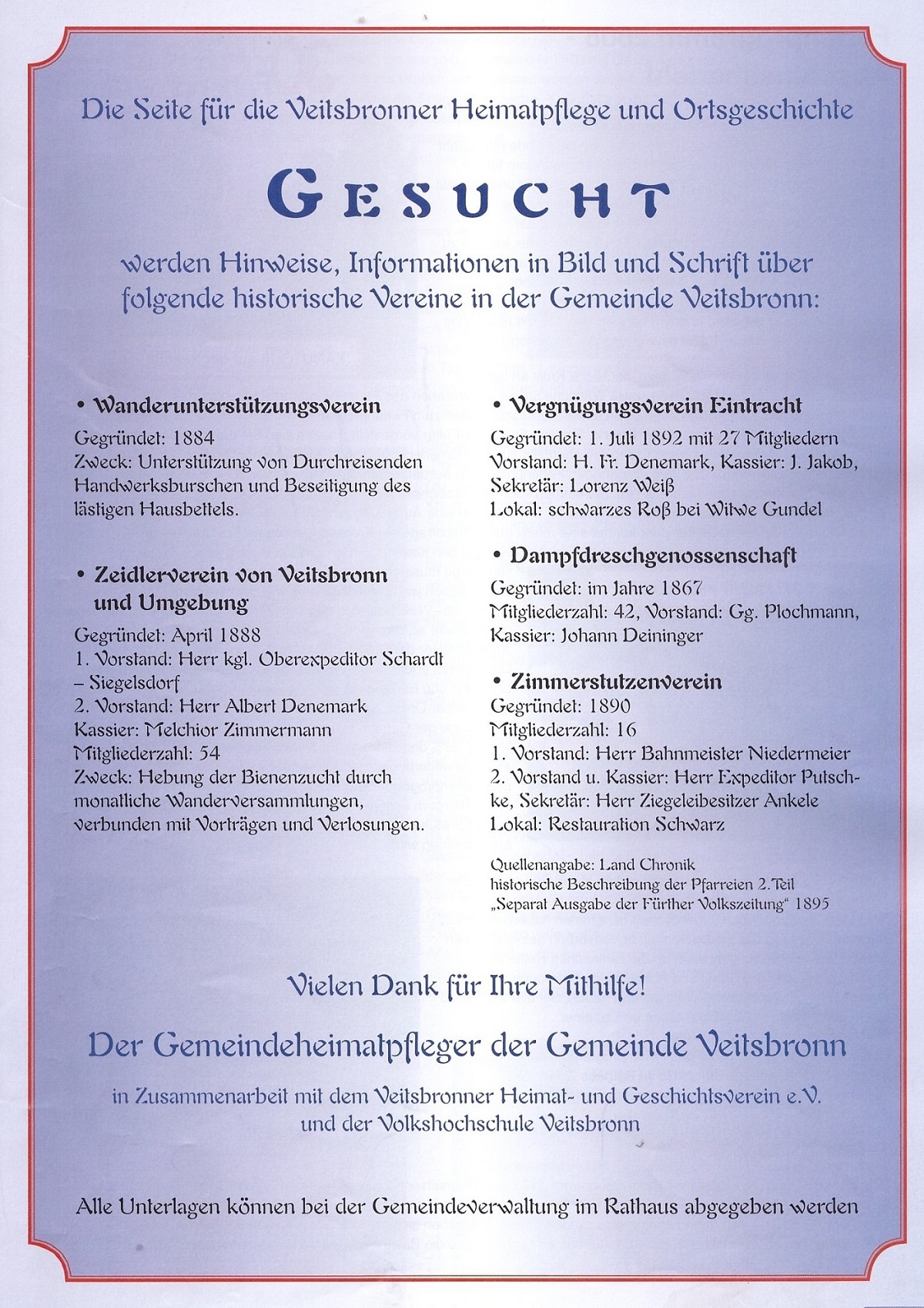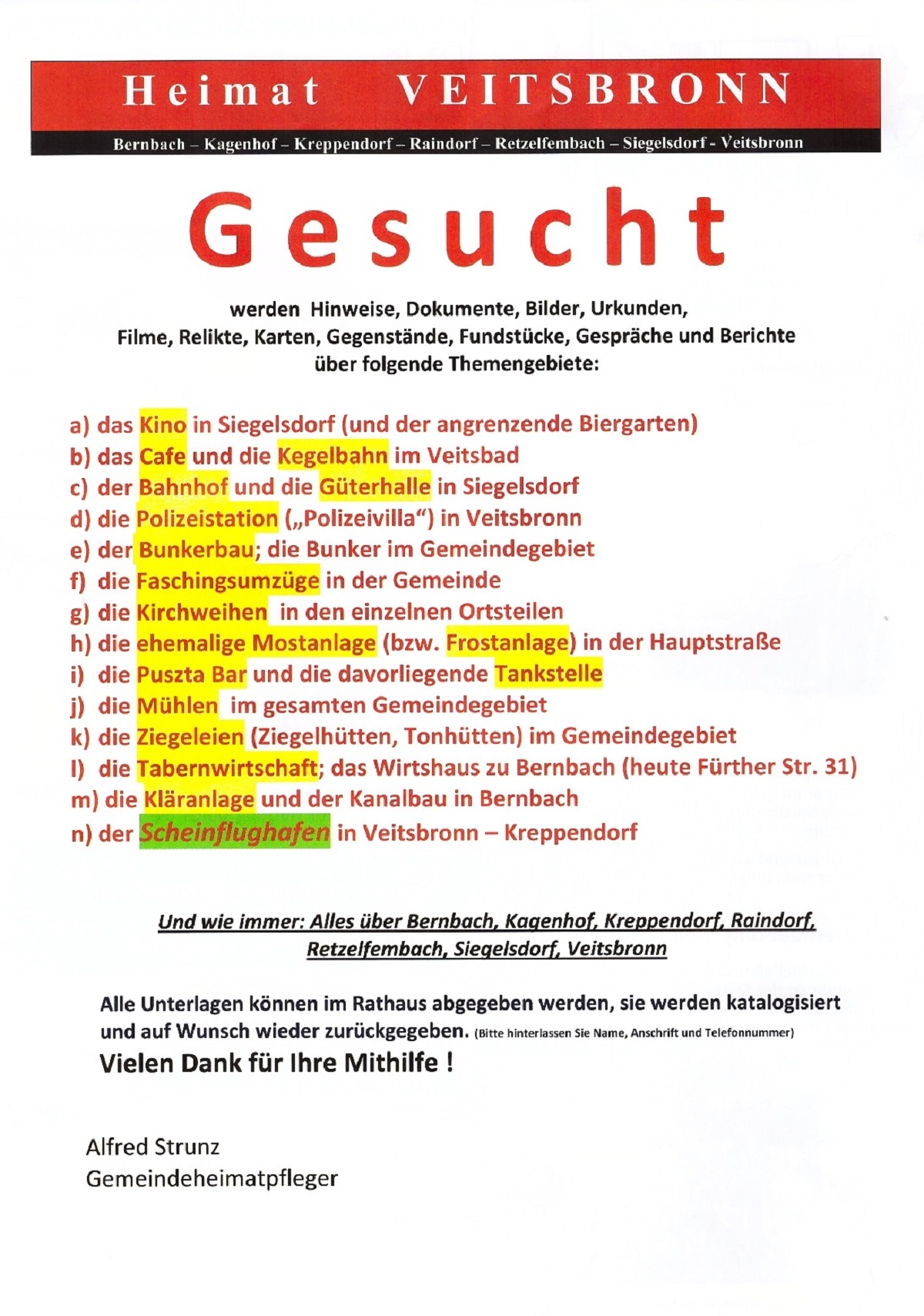 2017-08 Suchaufruf an die Gemeinde (Bilder, Dokumente, Urkunden usw)
