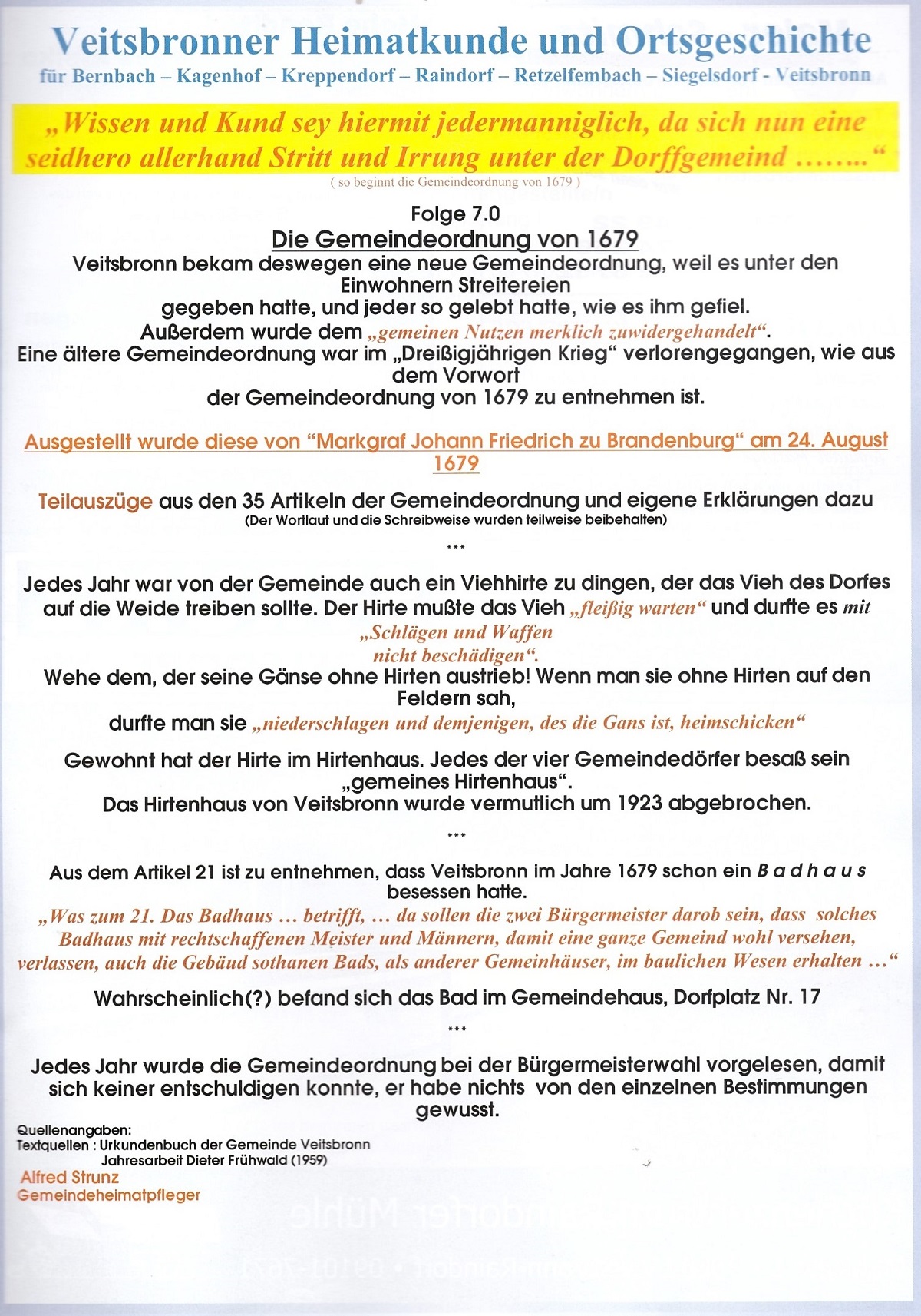2009-10 Die Gemeindeordnung Veitsbronn aus dem Jahre 1679