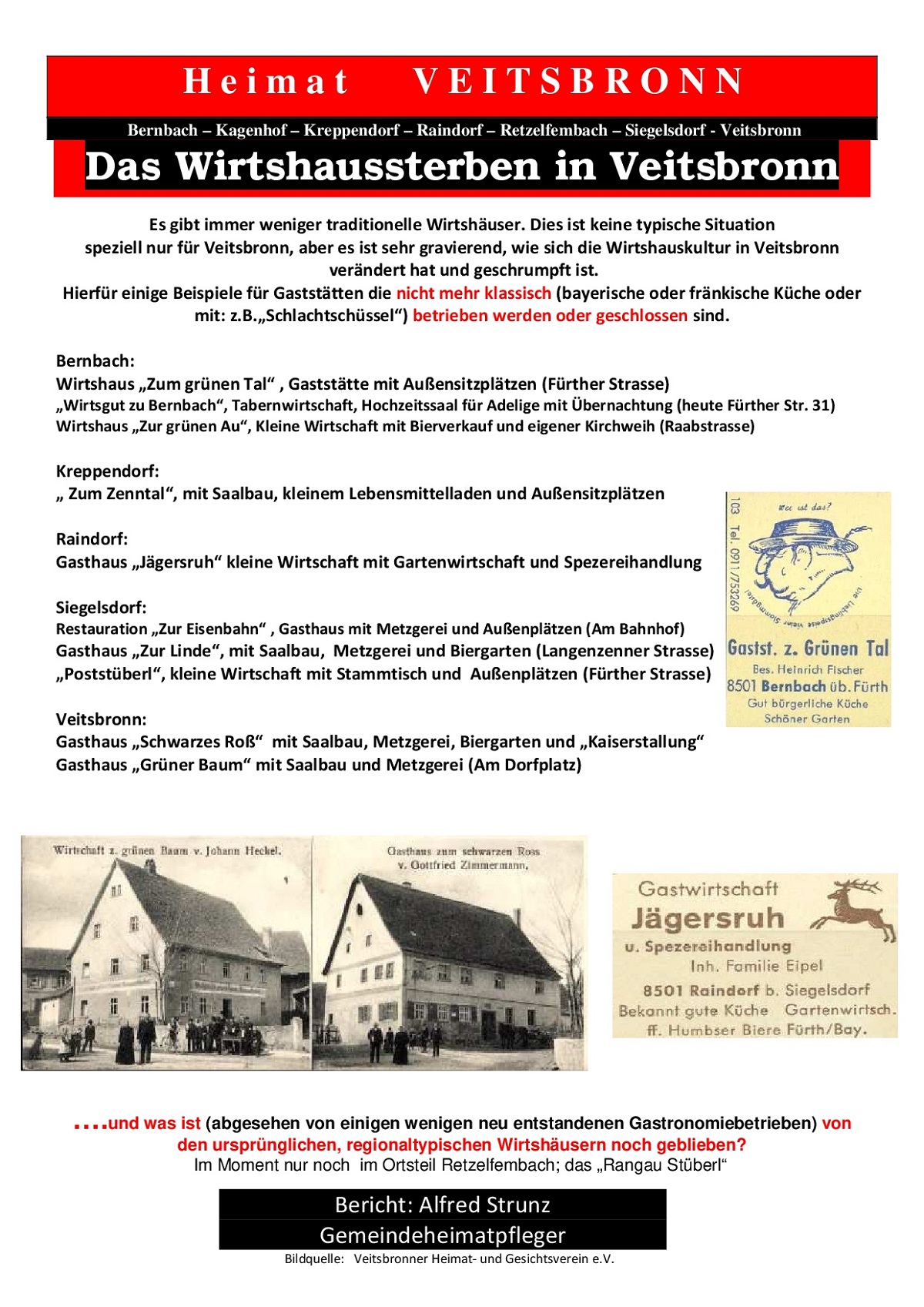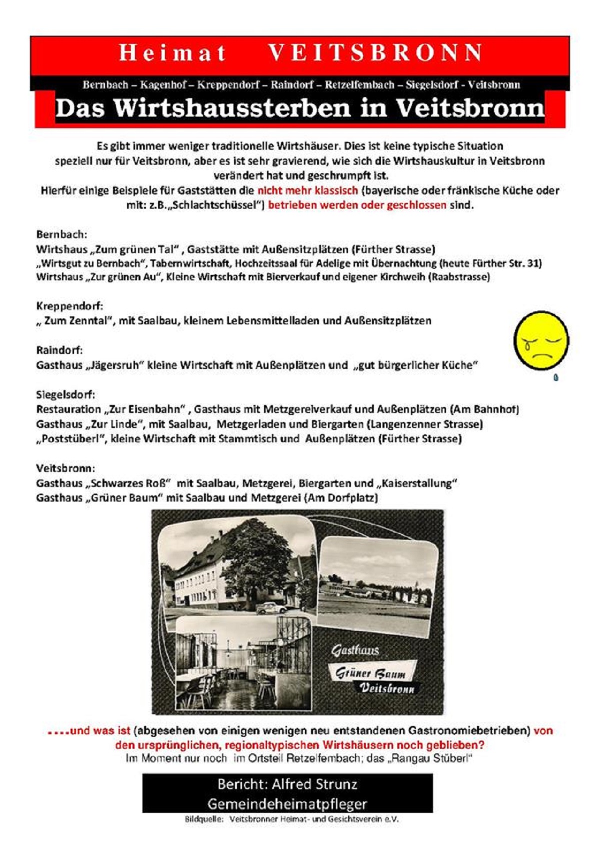 2014-03 Wirtshaussterben: Immer weniger reginale Küche in Veitsbronn