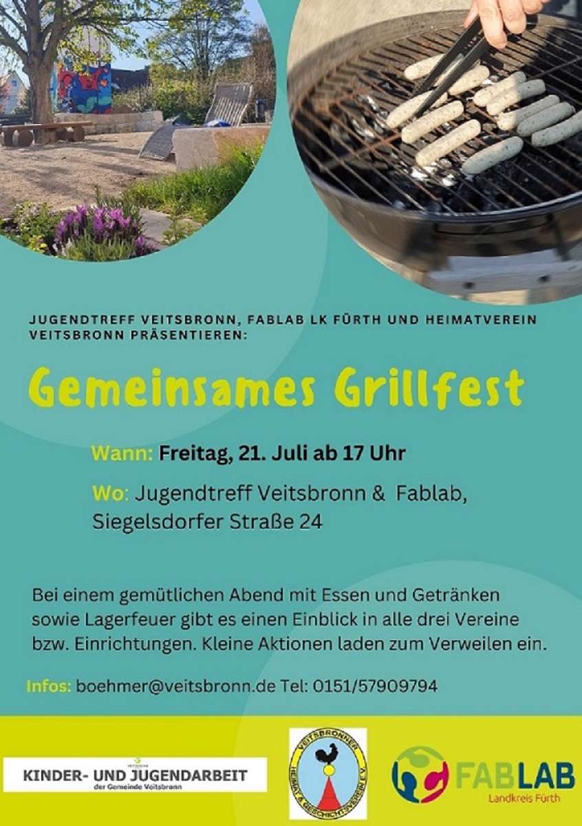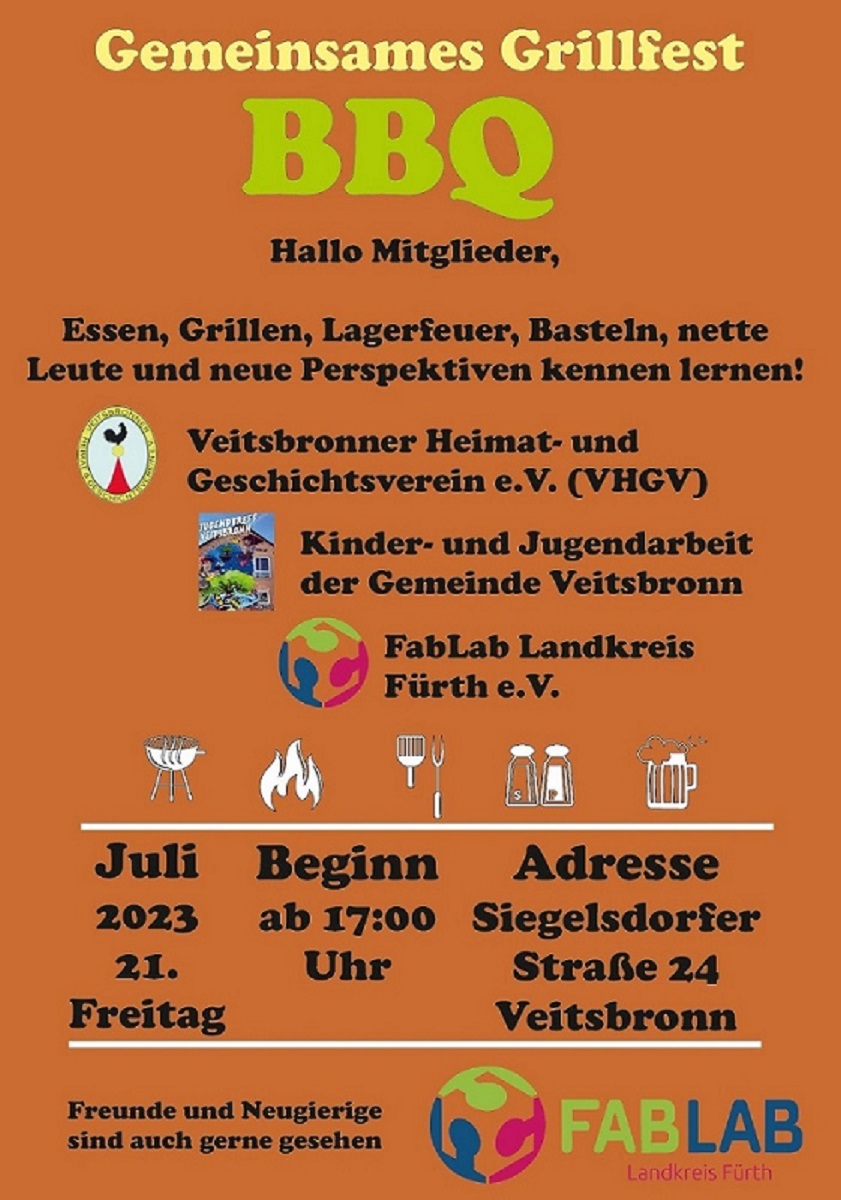 Termin: 21.07.2023 ab 17.00 Uhr auf dem Platz des Jugendtreff Veitsbronn Siegelsdorfer Str. 24.